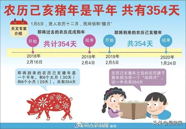 即将到来的农历己亥猪年,从2019年2月5日开始到2020年1月24日结束,共354天!