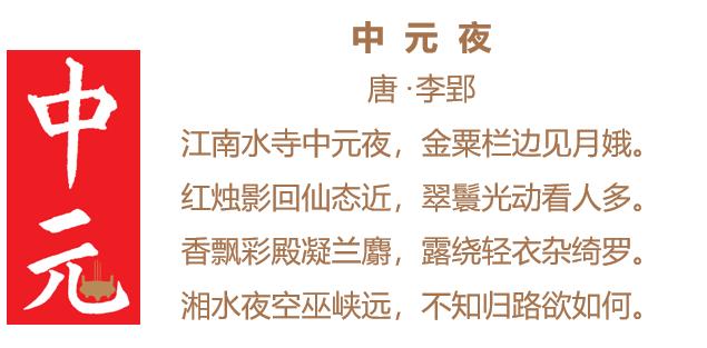 在中元节的活动中,放灯是很重要的一环,作者在这首诗中将中元节的盛况和民俗描写得淋漓尽致。
