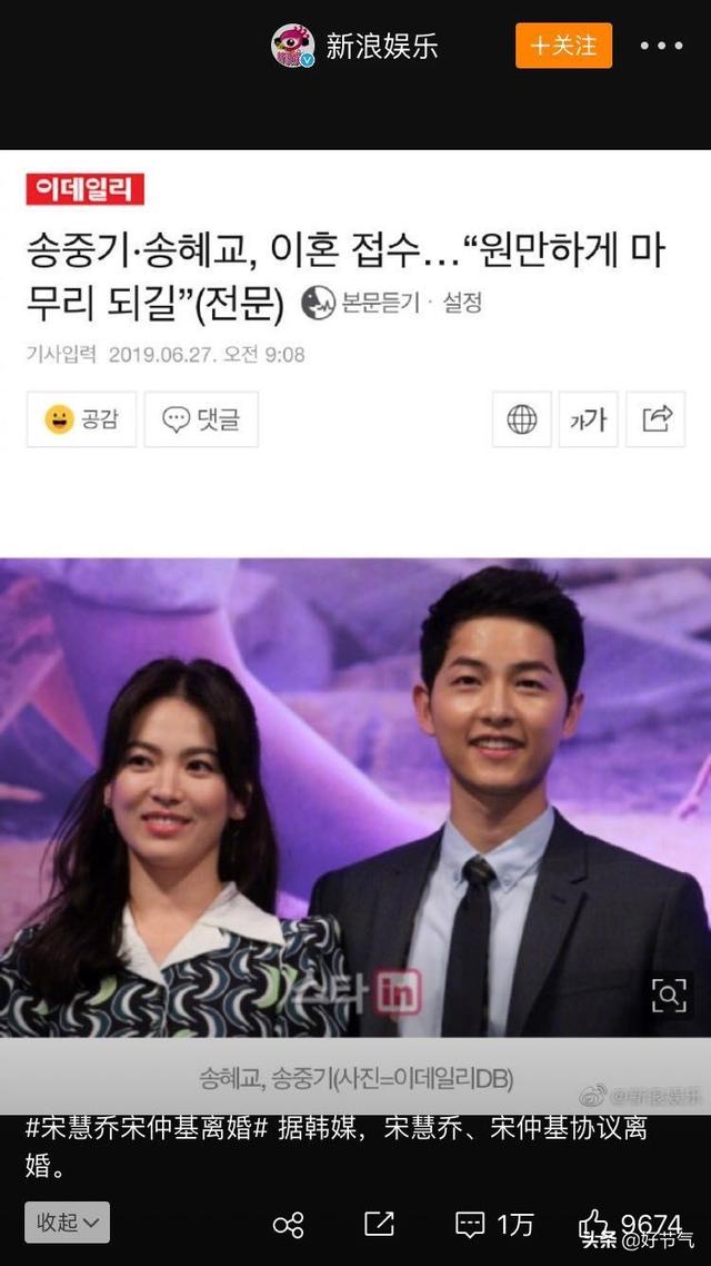 宋仲基官宣离婚