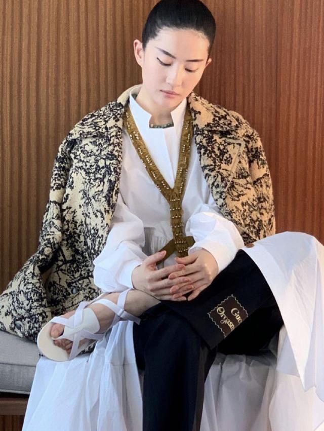 刘亦菲的气质可以说是无人能比的,加上刘亦菲无论是穿什么样的衣服,都能凸显出她的气质和魅力,下图照片中,刘亦菲穿了一件白色高领衬衫,搭配高腰阔腿西装裤,看着非常有女人味。